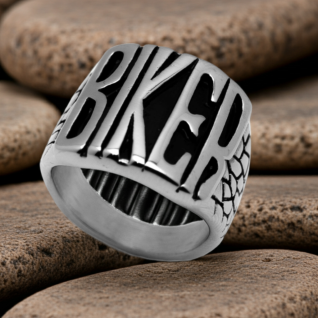 The Old School Motorcycle "BIKER" Ring Screams "BIKER" in Bold letters, standing a proud 21.7mm tall to Shout its message loud and clear. Built from Tough 316L Stainless Steel, it’s as Durable and Bold as the Biker Spirit itself. By Biker Jewelry.