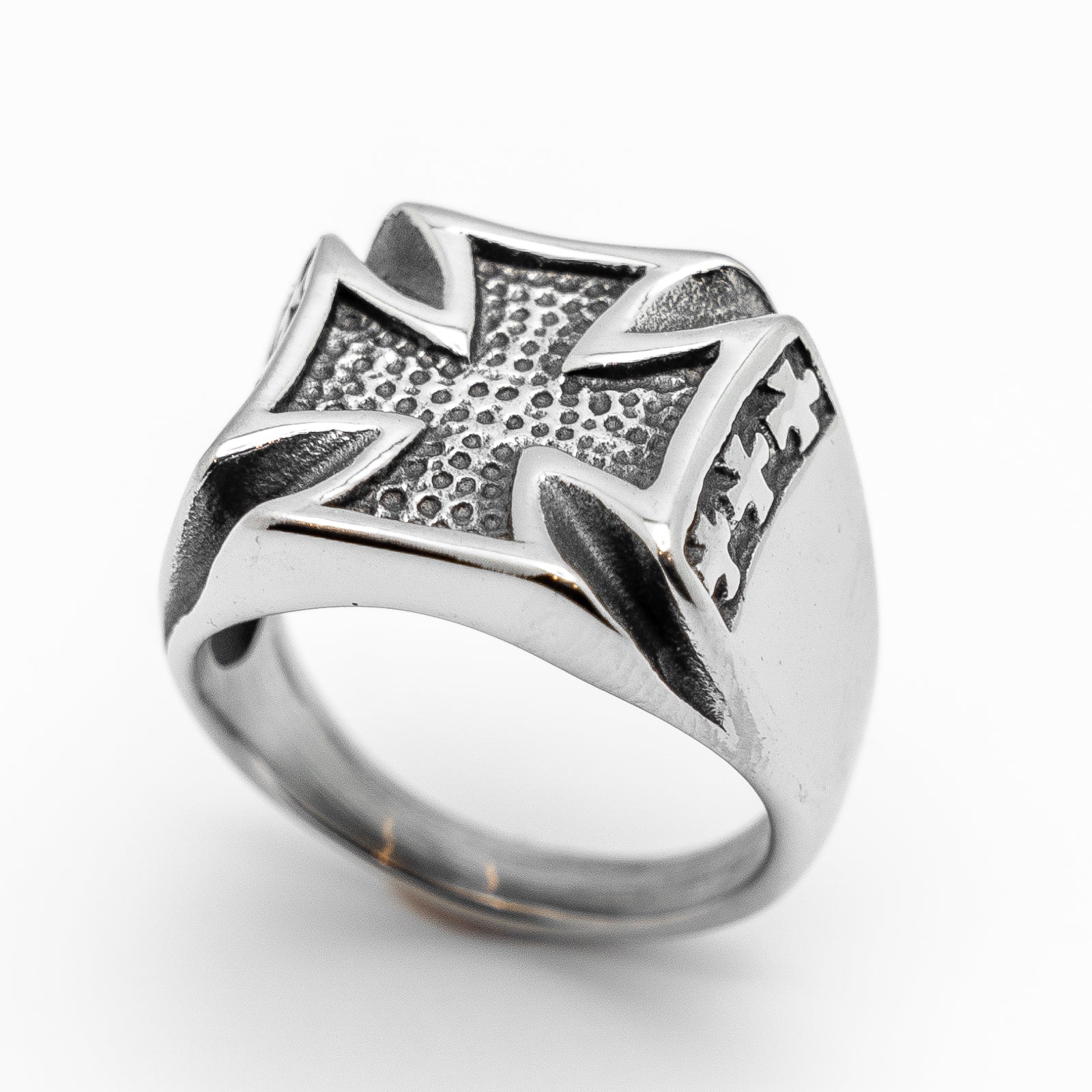 This Iron Cross Ring sports an 18mm square Iron Cross on top, flanked by 3 smaller Iron Crosses on each side—because 1 Iron Cross Just Isn’t Enough. The band narrows to 3.8mm, ensuring it hugs your finger like it’s never letting go, and the solid interior promises Comfort Without Compromise. Crafted from tough-as-nails 316L stainless steel, this design is as Timeless as it is Unapologetically Bold.