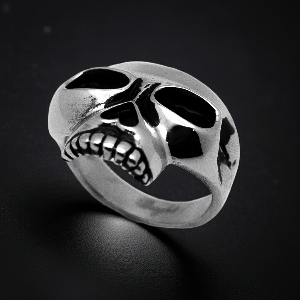 Introducing the Ultimate "Flat Top" Skull Ring that’s Here to Steal the Show! This Rebel of a ring sits low on your finger, with its Bottom Jaw cleverly MIA—Perfect for Bikers who need their gloves and their Swagger Fully Operational. The Blacked-Out Eyes Scream Drama against the Slick High Polish Finish, making this Bad Boy Absurdly Cool. Forged with 316L Stainless Steel, it’s as Tough as your Ride and Twice as Bold!