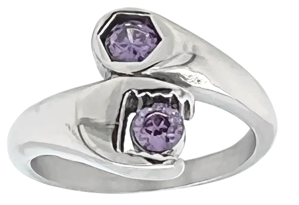 This February Birthstone Ring Showcases a Unique Wrench Design with 2 purple CZ Stones one each in both the open end and the boxed end which bend around your finger. making it Perfect for those who Admire the Art of Mechanics. Made from durable 316L Stainless Steel, it’s built to last and Stand the Test of Time. Add this Standout Piece to your Collection and Celebrate your Passion for Mechanics with the Ladies Birthstone Wrench Ring. We also carry a Matching Men's Silver Wrench Ring (SR32), click below to view.