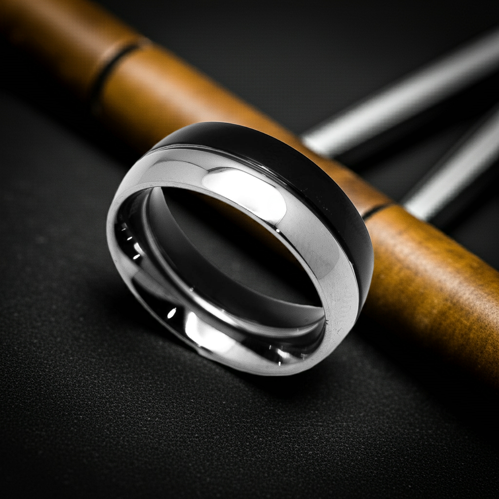 With a Sleek Two-Tone Fusion Design in Jet Black Titanium and Silver Finish, this Unisex Ring / Wedding Band is crafted from Durable Stainless Steel with a Comfort-Fit Band width of 7.8mm. Featuring a Simple yet Elegant Style with No Stones, it’s a versatile piece of jewelry perfect for everyday wear. Made with High-Quality Stainless Steel 316L, this Wedding Band is both Stylish and Practical, making it ideal as a Fashion Statement or a Wedding Ring.