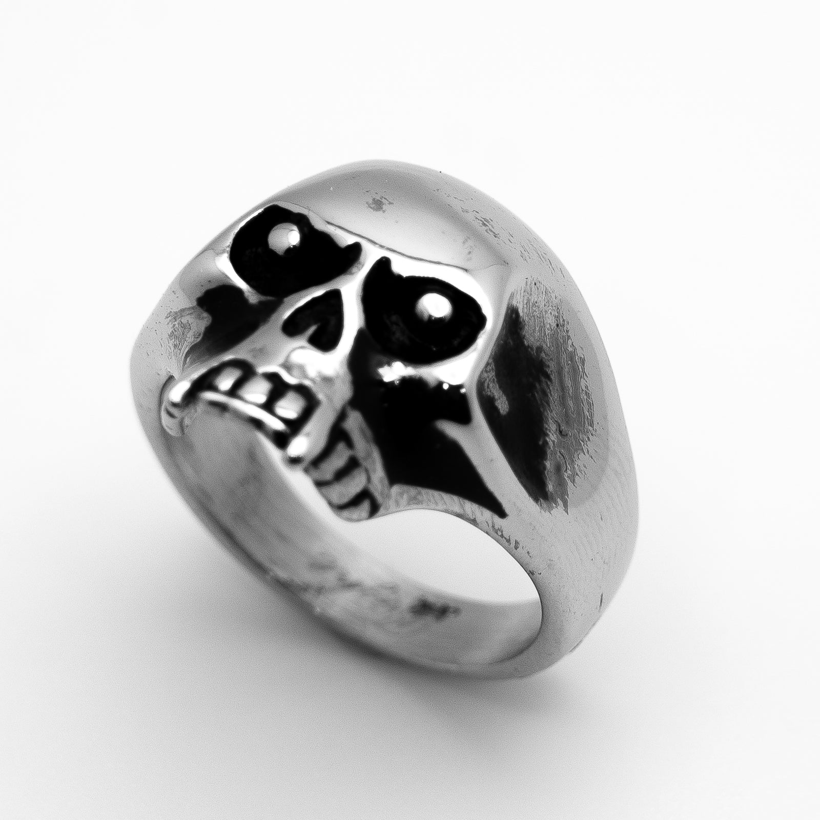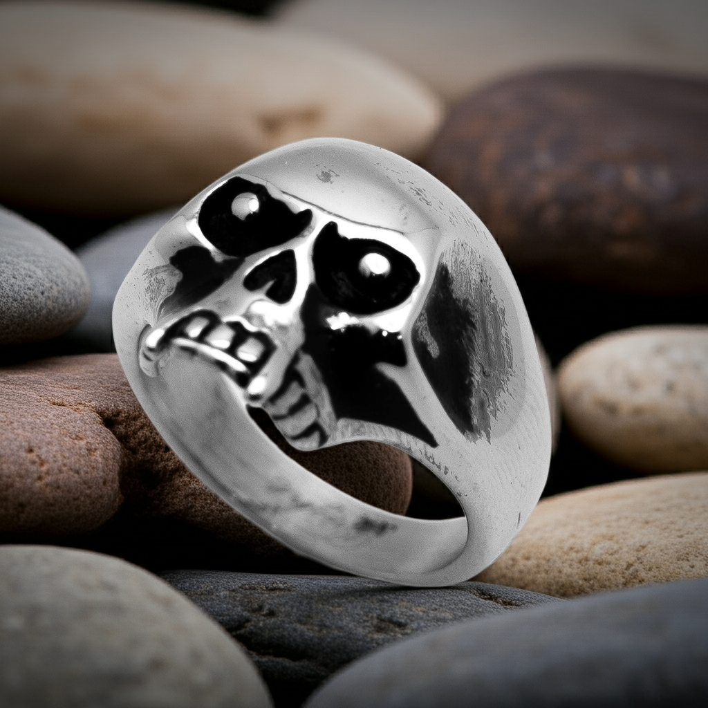 This High-Polished Vampire Skull Ring with Fangs Showcases Dark Eyes and Teeth. Measuring approximately 22 x 18mm on top with a 5mm shank, and offers a Great Unisex Size and Style, available in sizes for Both Men and Women. Made from durable 316L Stainless Steel, it's a Standout Piece of Biker Jewelry.