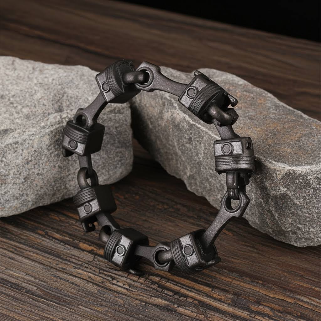 Men's Punisher skulls and piston gunmetal motorcycle bracelet with a lobster claw clasp. Looks really good on and displays just right on any ride.