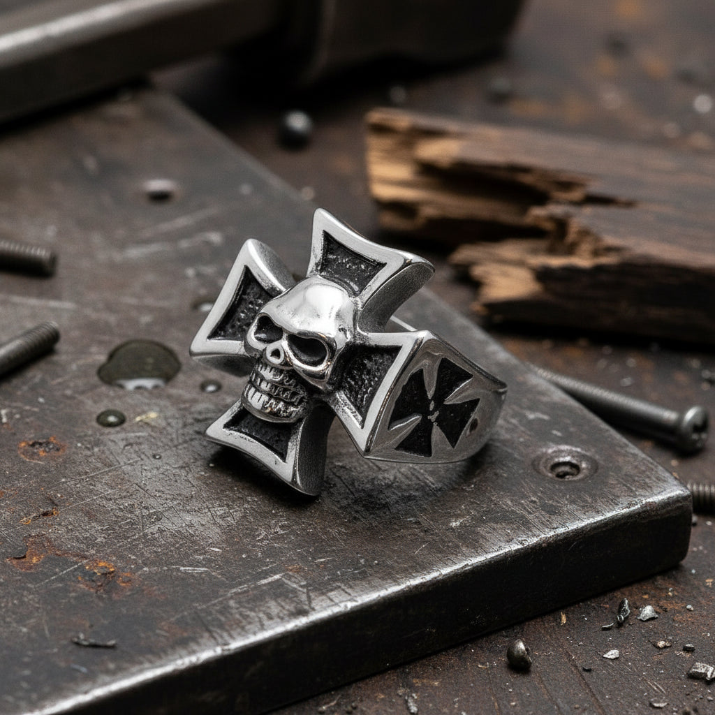 Iron Cross & Skull Ring Unisex Biker Jewelry Stainless Steel SR81