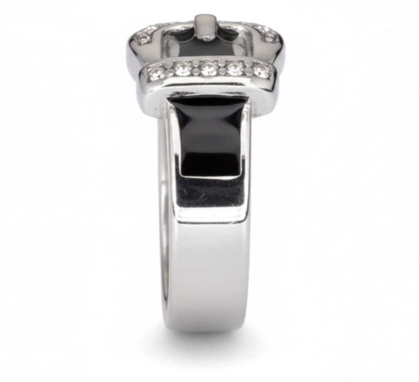 This Ladies’ Belt Buckle Ring comes in Six Vibrant Colors: Orange, Blue, Red, Black, Purple, and Pink. 12 Clear CZs are Set Flush on the Buckle for an Extra Touch of Bling, Crafted from the High-Quality Enameled Stainless Steel.